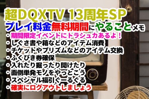 超DQXTV 13周年スペシャル プレイ料金無料期間にやることメモ
